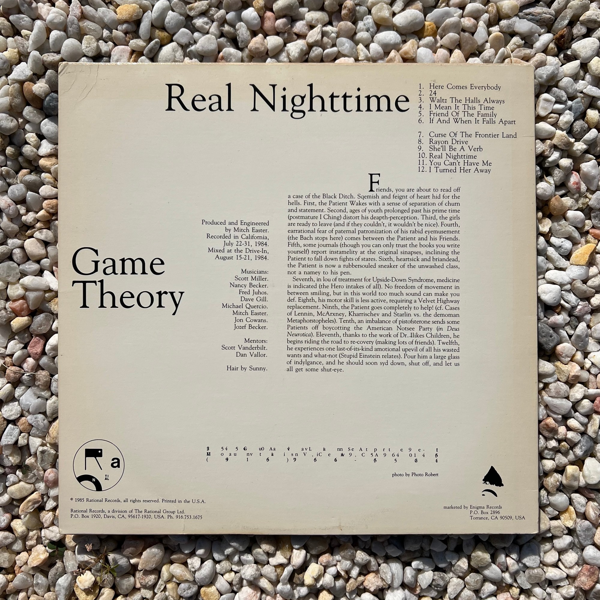 The Time Traveler sits across from his copy of Game Theory’s Paisley Underground power pop classic, Real Nighttime. The latter is one of several albums of note that arrived for the Traveler at Goodwill soon after his entry into the narrative. Music journalist Byron Coley called it “the actual godhead pop LP o’ the American Eighties. No shit. This is it.” Record producer Mitch Easter mixed the album at the Drive-In, two doors down from the House on Shady Blvd. “Was this record produced for me?” wonders the Traveler, eerie feeling running up and down his spine as he reads the text on the back of the LP: liner notes by band member Scott Miller. The Wikipedia entry for the album points the Traveler to a rather remarkable “annotated edition” produced by someone at the University of Wisconsin-Milwaukee in the 1990s. Modeled after the playfulness of Joyce’s Finnegans Wake, Miller’s text feels dreamlike and oracular. Transpersonal energies stir as one reads.